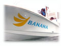 私たちの強力スタッフBANANA号。 もちろん女性の味方、トイレ、テント付。 八重山の海にミナサマをご案内シマス。 船の定員は14名ですが、 BANANAの一日のダイバーゲストさんは、 最大でも6名サマまでです。 グループで貸し切りご希望の際は、スタッフ増員して対応できます。まずはご相談を〜。