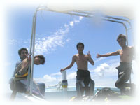 「楽しいダイビングの1日」の解釈はそのショップによって様々ですが、BANANAでは、ワタシタチスタッフや、その日縁あって出逢えたメンバー同士とのユンタク、そして青い空の下での昼寝やシュノーケリング・・・・など青い海の上で、日常にはない思い思いのリラックスタイムを過ごす・・というのもダイビングの醍醐味のひとつではないかと・・、出来る限り大切にしていきたいと思ってます。勿論、潜って皆さんをガイドするのも大好きですが、そんな、リラックスしたみなさんとの海の上での時間が、ワタシタチも大好きなのです。