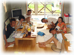 そして、ログ付け後が・・・・ながーーいユンタクの始まり始まり・・・。今日はたまたま地元ゲスト+プチ移住ゲスト。島のカルチャー(ショック)について、や台風の話など・・・・・島の住人ならではの話で、なんだかとっても、もりあがってました。あーー楽しかった。またコンディションのいい日選んで(島の住人の特権)遊びにいらして下さいね。。