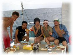 2本潜ってしまってからの、お昼のユンタクは、のんびり・・・・。血液型の話で盛り上がってました・・・。今まで、AB型は、誰にもあげられないし、もらえない・・・って・・知らなかったぁ・・・・。(ワタシAB型)。。