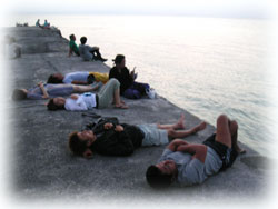 ご飯の後は・・・・西桟橋へ・・・ 今年は・・残念。夕日が雲に隠れてる。