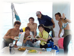 黒島は、残念ながら、少し濁り気味でしたが、いいお天気の下で潜るのは気持ちよかった〜。タッキーさんも現実を忘れて、嫌みな上司のコトなんて忘れて今日明日の2日間、思い切りリフレッシュして下さいね〜。 今からみんなでご飯を食べに行ってきまーす。 。