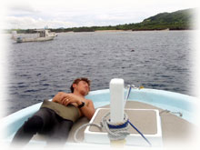 このお天気。ナンテ言っても、ハレオトコのタッキーさんがゲストだからね・・。ますはタッキーさん、一人で朝一竹富ダイブ。そしてその間、ワタシは、ご到着のゲストサンをお迎えに行きました。到着されたのは。去年の5月に潜って頂いたサトミさん。お友達のアユミさんと二人でのご来島。アユミさん・・なんだか癒されたいモード勃発だとか・・・。タッキーと同じだ・・・。移住したい、島にいたいよー病・・・先月も来られたばかりだそうなのに、また今回も思い立って来てしまった・・・。みんなタイヘンなんだ・・・ぁ・・・。。そしてそのアユミさんアコガレのプチ移住中のミホさんが今日は初ファンダイブの日。ミホさんは、6/2にバナナでの講習にてダイバーになったばかりです。。。