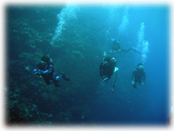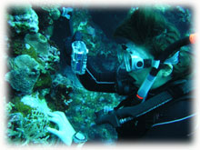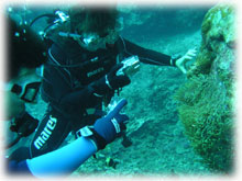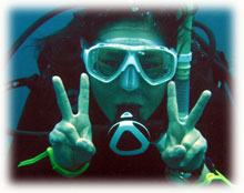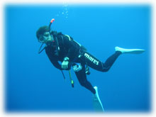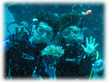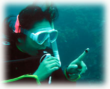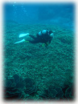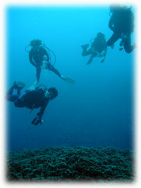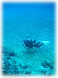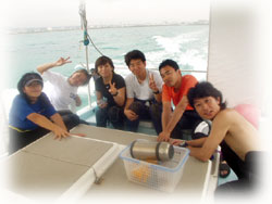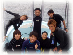 今日は、去年の5月オープンの頃のゲストさん、イケダさんが帰ってきてくれました。そう、彼女のハルミさんを引き連れて・・・♪ ナントっイケダさん、去年の5月に30本くらいの経験本数だったのですが・・・・今のログは120本っっ。一年と少しで100本弱ふえているぅぅぅ・・・。れっきとしたダイビングフリークとなられたようです・・。そして、きのうに引きつづきのイイダさん、そして地元ナースのサトコちゃん(←先日壊れたデジカメと同型のカメラをオークションでゲットしたとか・・)今日はハウジングテストです。今日は少し風も波もおさまってきました。 朝の「みんなでどこへ行く??会議」で昨日行けなかった小浜に決定。透明度を求めてみました。。。