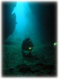 せっかくココまで着たのに・・・残念な透明度・・・・・・。アーチや穴など、ダイナミックな地形だけど、マクロダイブになってしまいました。。