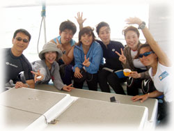 ああ・・・笑いすぎてオナカ痛かった・・・。今日は久しぶりに晴れてそれだけで気持ちよかったです。透明度は・・・でしたが・・。初ファンのヤマモトさんご夫妻は、それでもキレイ・・とおっしゃってもらいました。。是非今度は・・透明度のいい海で、でかいマンタを見て頂きたいです。そして帰ってきてくれたイケダさん、そしてハルミさん。楽しい時間をどうもありがとう♪イケダさんは去年、ウチの朝のお迎えの車にのったとたん土砂降りとなって梅雨入りしたことから、雨オトコのイメージでしたが、今日晴れて免除となりましたぁぁ。今回は風邪で耳が゜辛そうでしたが、またぜひ、体調万全で遊びに来て下さいね。まっとりまする〜・・・・。