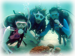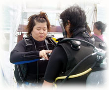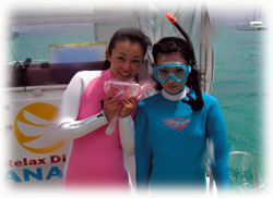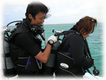 今日もいいお天気になりました。昨日始まったヨーコさんの講習の2日目です。そして、いつも来て頂いてるアズサさんはFUNダイブ、そしてその幼なじみのコッコさんが体験ダイブで来てくれました〜。コッコさんは、北海道は釧路からはるばる・・。まだストーブをつけているという釧路・・そう聞くとなんだか驚きっ!