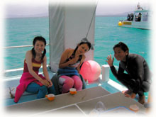 ・・・と言うわけで、いいお天気の中、講習、体験ダイブ、FUNが無事終了〜。講習は残すところあと1日です。もうほとんどのスキルは出来ているので、楽勝〜・・。なのに「明日はコンパスがあるから寝られない・・・」といってみるヨーコさんなのでした・・(誰も信じていない)。ちなみに昨夜は「マスク脱着があるから、2時に目が覚めて寝られなかった」そうです・・。