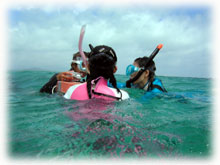まずはシュノーケリングで水慣れ。