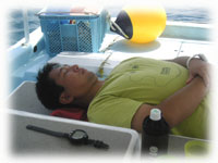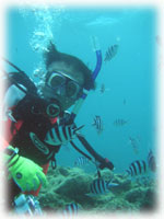 タナカ氏は、すでにベテランダイバーです。5月に中性浮力が撮れない・・とPPB講習を受けたのに、今ではホント余裕の表情。今回、マイギアーで悠々潜っている姿はカッコイイ・・・。今度はデジカメ購入・・で楽しくなること請け合い・・・。