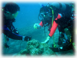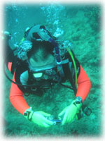 こわさないように、中性浮力で。。
