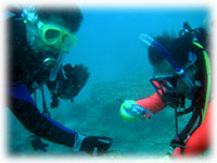 横で聞いてるとサカナの名前がドンドン出てきて、ワイワイとなんだかとても楽しそう・・。唯一、デジカメ持ちのサトーさん、マンタを撮った・・・と思いきや・・・あれれ・・ピンぼけ写真と共に、削除してしまったそうです・・・・・・。ご愁傷様。