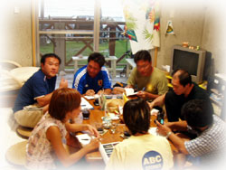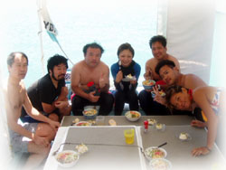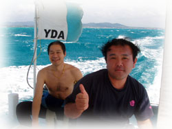 そして・・・・三日間精力的に3本潜って頂いた、タナカさん、サトーさん、トミタさん(今日5枚しかシャッター切れなかったデジカメダイジョウブでしょうか・・・??)本当に有り難うございました。上司と一緒のダイビング旅行はいかがでしたかタナカさん・・??ワタシタチは、楽しいキャラの上司ゲストさんたちで楽しかったです。ちなみに幹事さんとしてのマージンをタナカさんは上司からちゃんと払ってもらってました。(←金200円也っ!優しい上司に恵まれてしあわせっ!)。しかもマンタ10枚見られなかったので(自分は5月に2枚見てしまった・・・っ)今後の査定に響くらしいです・・・。。BANANAは、力になれなくてスミマセン・・・大崎での一枚でご勘弁を・・・。