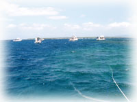 竹富の南はダイビング船ラッシュ。 まるで台風の時の様な波と風。。