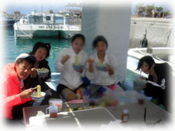 静かな港に入ってお昼です。ハヤサカさん、400本記念と共に、初●゛ロして、復活。食欲満点。いいことです。