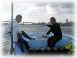 まず、出航前にボートの上で、今日の課題「ナビゲーション」のブリーフィング。コンパスの正しい使い方、そして今日の課題をこなす為の説明です。