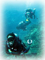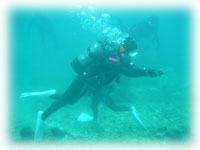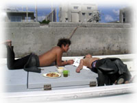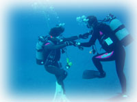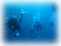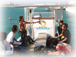 ダイブマスター候補生のオオクボサン、ヤタベさん、時化の中のハードな講習のアシスト、お疲れ様でした。だんだんゲストを見ていくフォーメーションが出来ていることが、なんだかワタシはうれしかったです・・。 |