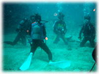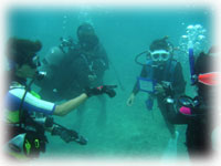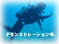 「P.P.B」とは、「中性浮力のコントロールのとり方」に関する講習です。まずは、ヤタベさんから中性浮力をとるためのデモンストリレーションを・・・。今回は、出来るだけ呼吸で浮力コントロールを身につけて見ましょう・・と言うのが目標です。