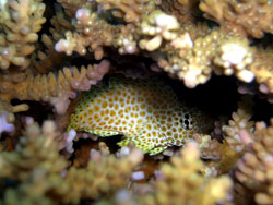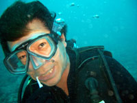 昨夜、「やまもと」でみんなで宴会。しこたま焼き肉を食べて、今日はアドバンス講習最終日です。しかし・・・・台風23号も接近してるし、海は時化時化(←じかじか・・ではありませんよ←タカハタさん・・・)。台風前の講習、ホントにトホホ・・・。ですが、ゲンキに行ってみるしかございません。ポイントは、講習をメインに考え、比較的静かなサクラグチ近辺です。今日は、ブラック軍団ご一行のうち、引き続きアドバンス講習でのタカハタさん、シンジョウサン、ハマダさん。そしてダイブマスター候補生のヤタベさん、オオクボさん。そしてファンダイブのフジサワさん、そしてマコさんというメンバーで出航です。