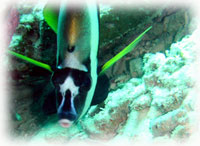 めずらしくヒトを避けないサザナミヤッコ。 美しい色合いでした。