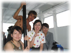 それは最悪。とにかくお店で急いでログ付して、オオバさんだけ小浜への船に乗るため離島桟橋へ〜。向こうにいてる友達と相談をしてどうするか早急に決めてもらわないと・・・。。