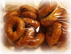 天然酵母のベーグルは、よくあるフワフワのパンではなく、もっちりとした食感とパリパリとした表面が香ばしい固めの食感。よーくかみしめるとしっかりとした味があります。毎日食べても飽きないのです・・。