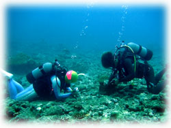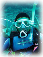 最近は、ガイドの後をついて行くだけでなく、自分で何かを見つける楽しさを見つけ始めたサトコちゃんです。ベテランダイバーとしての楽しみの段階を確実に踏んでるぞ・・・ぉ・・。見つける楽しみってあるんだよね。今日は キンチャクガニ発見でした。これからもいろんな発見を水の中でしていって下さいねんっ。