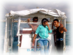 台風24号が去り、今朝 BANANA号を下ろし出航です。デモ、風きつめ・・・。台風のおかげで BANANAはキャンセルが立て続けで、今日のゲストは・・・地元ナースのサトコちゃん一人。Relax Dive BANANA貸し切りダイブとなりました。しかも、いつも手伝ってくれてるガイド、マッシーまで登場。ガイド3人にゲスト一人のVIPダイブとなりました〜。。
