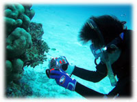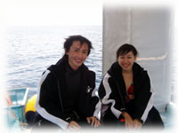 このひと月以上強く吹き続けた風が少しマシになり始めました・・・。そんな今日のラッキーゲストは、若いカップルさんです。マキタくんとナカジマさん。まだ学生さん。なんだかとても初々しいカップルです。だけど・・・ダイビング経験本数は100本超えと100本弱・・・。ダイビングサークルに入っているそうです。 今日はギンガハゼなどのハゼハゼダイブを離島で・・というリクエストで、まずは竹富の南へ。。