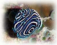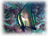 このポイントではかなりの数のタテジマキンチャクダイ幼魚を見ることがデキマス。ワタシは今日5個体みました。これは大。