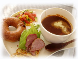 静かな大崎に戻って一息。 ランチタイムです。アツアツシチューをどうぞ。