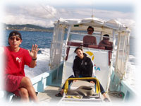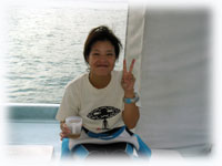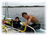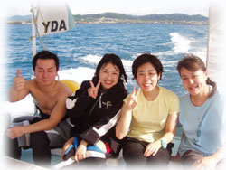 で・・・港で合流。初体験のヤマウチさん、そして昨日に引き続きのお二人、そして今日は、昨日風邪でダウンの地元ナース・セキネさんも参加です。