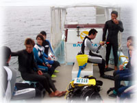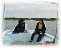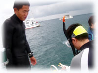 今日は、3本希望のまやちゃんだけ朝一出航、そして昨日のクワバラさんたちの同僚のヤマウチさんは、初体験ダイブの為、その間港でブリーフィングです。。