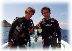 タッキーさんは初マンタになるか・・・ 本日のガイドはウチノヒト。 ワタシはファンダイブ〜。