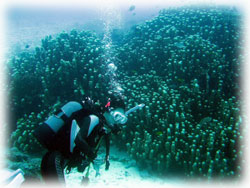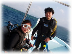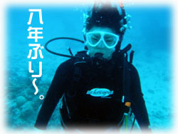 ユキノさんは、ペーパーイントラさん。ナースもいいけど、ダイビングのシゴトがしたい・・・んだそうです。自然相手はハードでっせ〜。