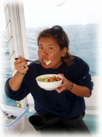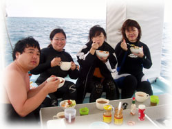 今日はけっこう船の上も揺れていましたが、みんな船酔い知らずなメンバーなので助かりました。島影の静かめの所を選んだけれど、ランチの間もゆらゆら・・。