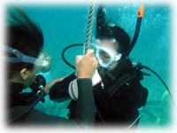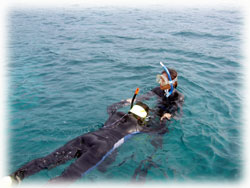 船の下に帰ってきたら・・・ キヨチンとマキコさんが潜り始めてます。 その調子〜・・・ 。