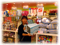 内地は、いゃ・・東京の真ん中の大都会は、ホントにモノがあふれ、情報があふれ、音があふれ・・・人があふれ・・島にいるときより、目や耳などの五感から入ってくる様々な情報や刺激量が一気に数百倍ほどに増えて、自分にアプローチしてくる気がする・・・・。すべてそれは、ニンゲンが作り出したモノであり、音であり、形であり、情報。島でいつも、自然界の作り出した天然の色や形、逆らえない自然の摂理やその動きと向き合っている生活をしていると、人口的なそれらをうまく自分の中で漉しとることができなくなってて、ドンドン自分に向かって染み込んでくる気がする。それは甘いお菓子のような魅力とおいしさがあるけれど、やっぱりだんだん・・その過剰さに、すこし疲れてくるんだな・・。なんだか、しつこいセールスマンの巧みなおしゃべりを聞いてるような感覚。自分の必要とするモノがなんだかよく分からなくなる怖さと戦っている自分を疲れさせる。(←とかなんとかいってスゴイ買い物してたやん・・・?!)