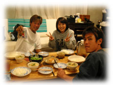 メニューは、 ● なすっちリクエストのグリーンカレー。 ●今日の朝頂いた広島の生牡蠣。 ●水菜サラダ ●極めつけは、タコ焼きっ!