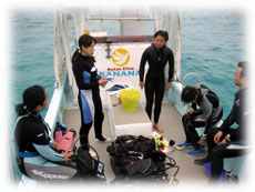 浅めチームと深めチームに分かれてエントリー。浅めチームは、水面を探しに行きマンタ楽勝・・・と思いきや、逢えませんでした・・・。 |