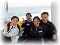 オクデラヒロユキさん・アキコさんご夫妻(←日本での初ダイブッ!)キタヅメさん(←12月初めの台風で今日になりました・・・)タケウチさん(←9月に一度来て頂きました。イラスト激ウマダイバーさん)でっす。