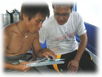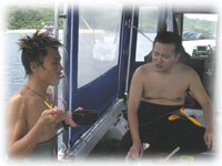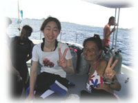 P.P.B講習も体験も無事終了。今日の海は・・・いゃぁ・・・スゴイ風でした・・。「海へ」のみなさまお世話になりました。 リエさんは今日でお別れ。タナカサンは、明日からアドバンス講習がはじまりまーす。そして明日はBANANA号で出航です!!