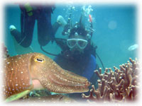 耳がぬけにくいと心配していたケイコさんの耳はやはり少しぬけずらくて、マンツーマンで潜りました。エントリーしたら・・・スゴイコブシメの数。あっちこっちでラブラブです。