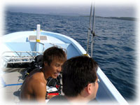 朝からピーカンの石垣島。ほんまに梅雨か・・・〜?? 夏の様な今日一緒に出航するメンバーは、新婚ほやほや曽武川ご夫婦・ケイコさんとサトシさん。そして昨日からアドバンス講習に突入のタナカさん、そしてそして今日から参加のツッチーさんの4人さんなのだ〜。あついあついと夏気分満載で出航。