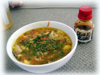 今日は、中華ワンタンスープ。 暑いのに熱いメニューで大失敗・・。