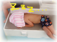 さてさて、結構泳いで遊んで、港に帰ります。子供はずーーと泳いでいても平気っ〜!!