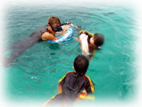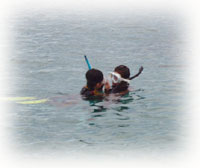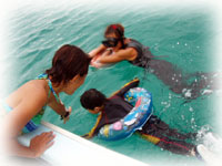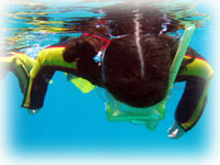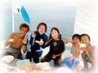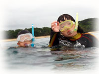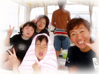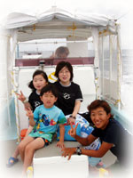 今日のゲストは、オザワさん親子がシュノーケリングに来てくれました。オザワイクコさんと、その娘さんアヤカちゃん、息子さんのユウトくん。そして今日遊びに来てくれた、友達のリカチャン。リカチャンは、スキンダイブインストラクターで、「ルンバルンバ」というお店を島でやってます。