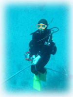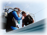 でもでも、ダイブマスター候補生インターンシップのヤタベさんは、ビギナーのタカハタさんとバディ。