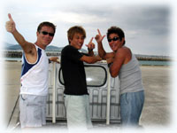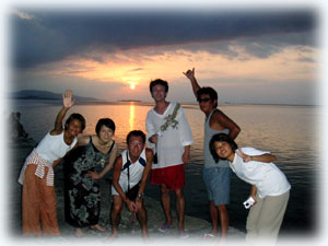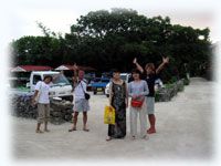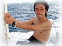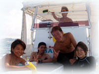 さてさて、今日もブラック軍団(こう言ってますが、決してヤ●●さんではありません。実はこの面々、人気エリアの有名美容室をされてるギョウカイでは超有名美容師さんたちなのです・・)一足先に石垣島入りされたニシガイ氏は、どうしても入れられてしまったシゴトの為、今日の便で仕事先に向かいます。みなさん、このツアーの為に一年前からスケジュールを押さえなければ行けない・・という人たち・・。それでも、ニシガイさんはダメでした・・・残念。ワタシタチは、ハラハラドキドキ・・。何でかというと、ニシガイ氏は超晴れ男っ。そして今日からは、超雨時化オンナのイダチンが登場なのです。昨夜の焼き肉やまもとで、さんざん遅刻しないようにミンナから念を押されたイダチン。ちゃんと今日は時間通り登場です。今日も、ヤタベさん、オオクボさんはダイマスのインターンシップで参加。そして昨日に引き続き、ウエムラさん、シンジョウさん、イノウエさん、フジサワさん、タカハタさん、イダチンの貸し切りです。。