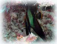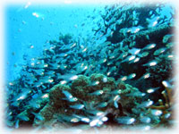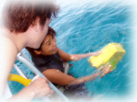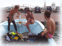 温泉で2本潜った後は・・・ミナサンを竹富島にお送りして、「ミンナだけでは心配だー・・俺ものこるぅ〜」というヤタベさんとオオクボさんのダイマス候補生のお二人と石垣の港に戻り、新旧タンクを積み替えます。 |